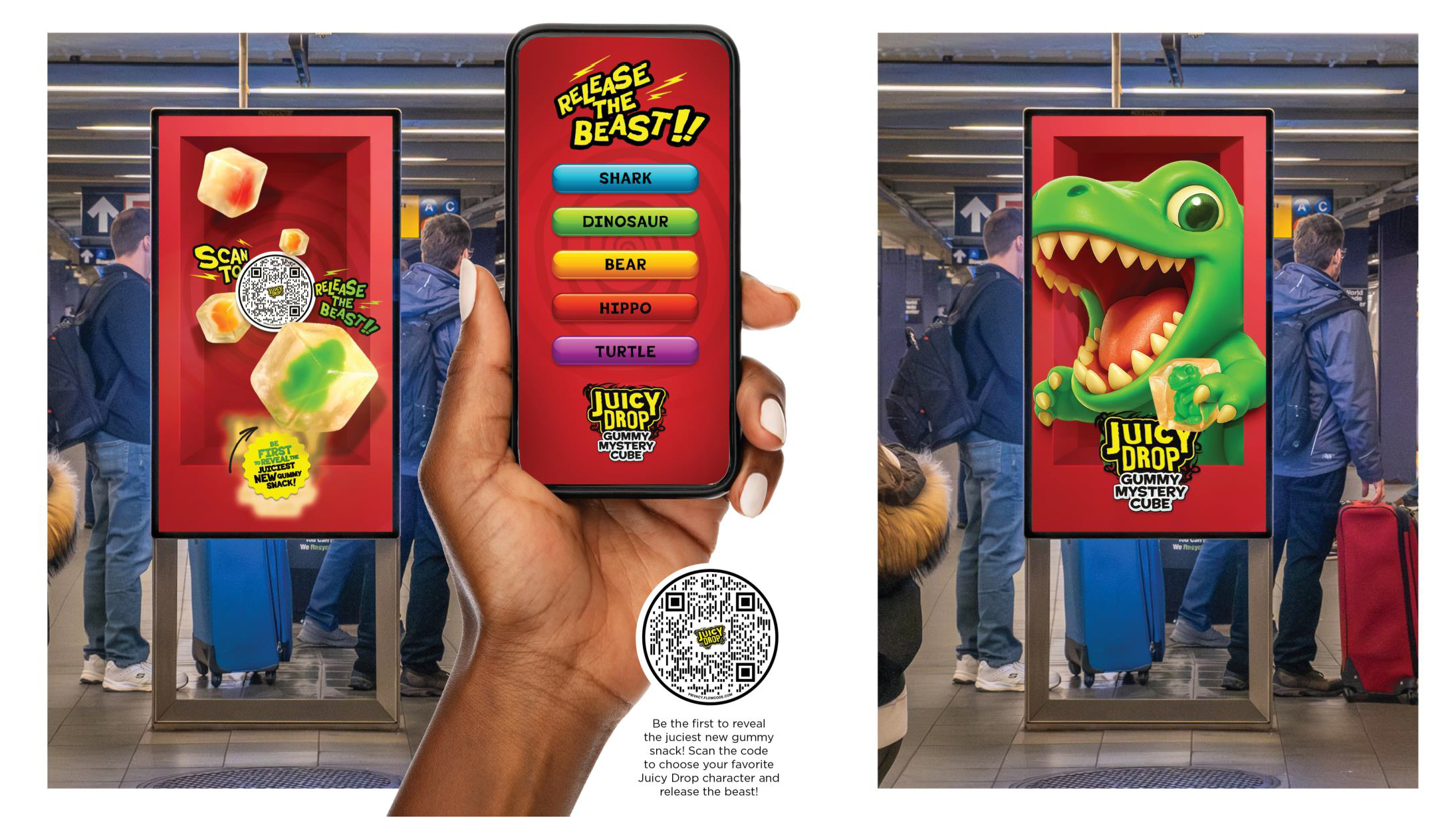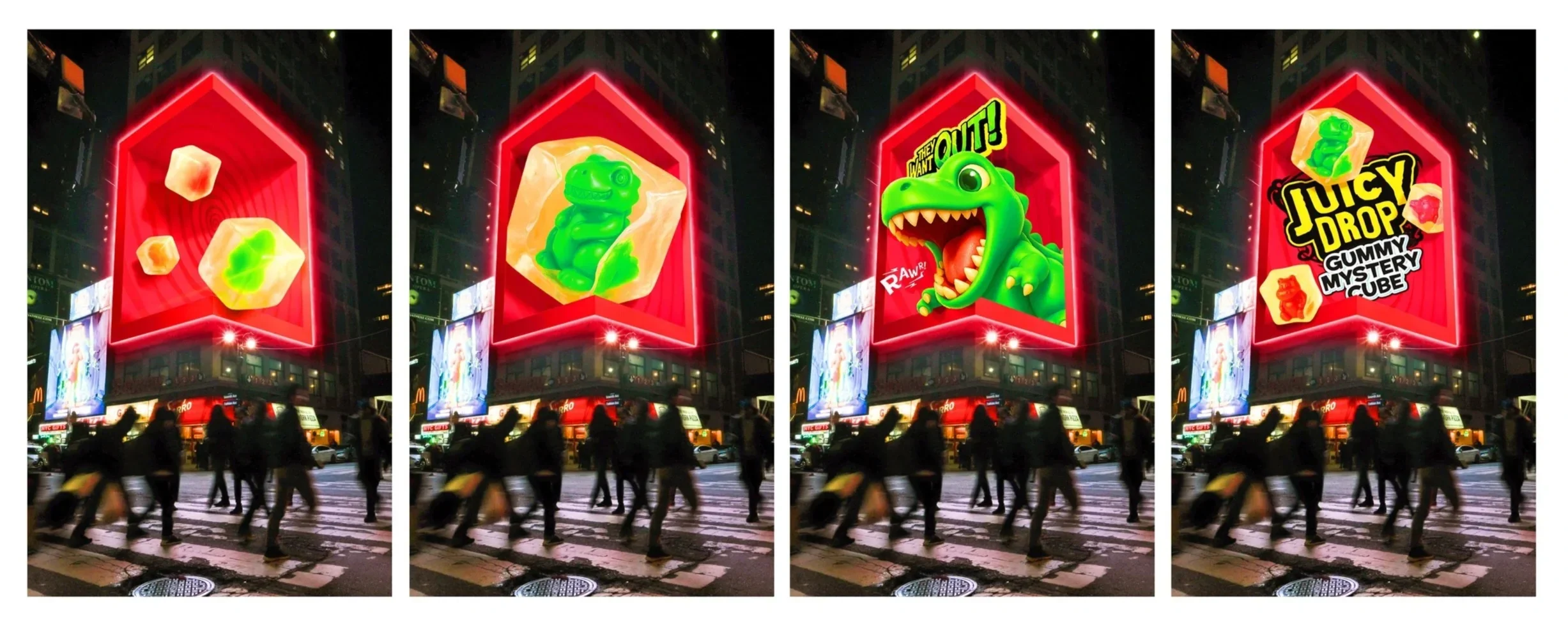 A bold out-of-home launch designed to spark curiosity, build anticipation, and turn everyday spaces into playful moments of discovery for Juicy Drop’s Mystery Cube Product Launch